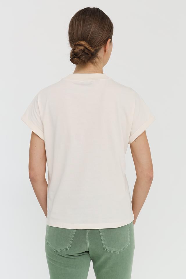 Эта футболка от Marc Cain станет незаменимой частью вашего гардероба. Выполнена в нежном кремовом цвете, который легко сочетается с различными элементами одежды.