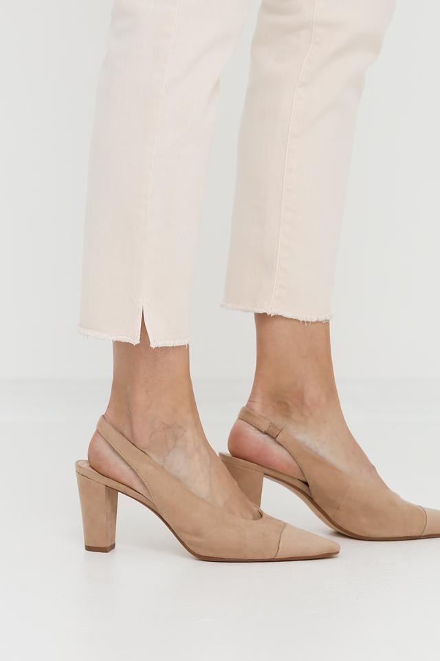Бежевые джинсы Marc Cain с зауженным к низу кроем и необработанным краем. Модель выполнена из органического хлопка с добавлением эластана для комфортной посадки. Состав: хлопок органич. 92%, эластомультиэстер 6%, эластан 2%