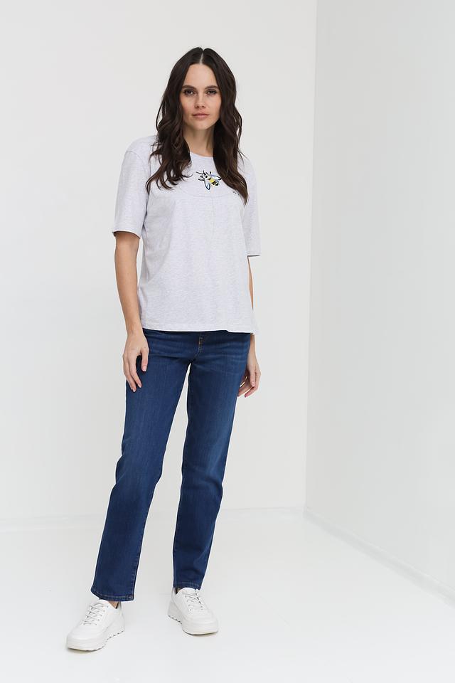 Особенностью модели является эластичный пояс, обеспечивающий удобную посадку, и декоративная отделка заднего кармана стразами, добавляющая изысканности.