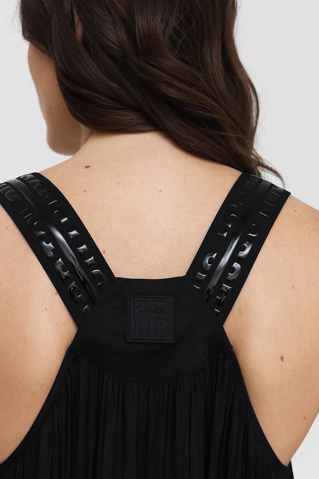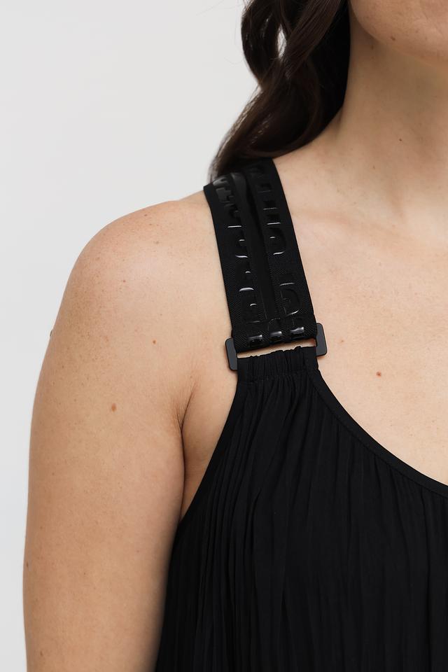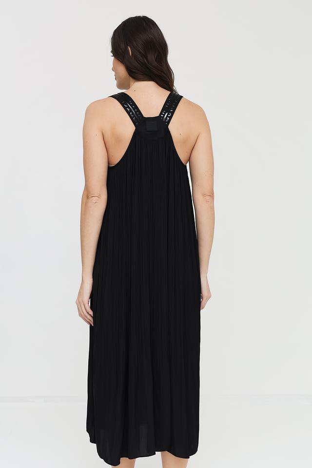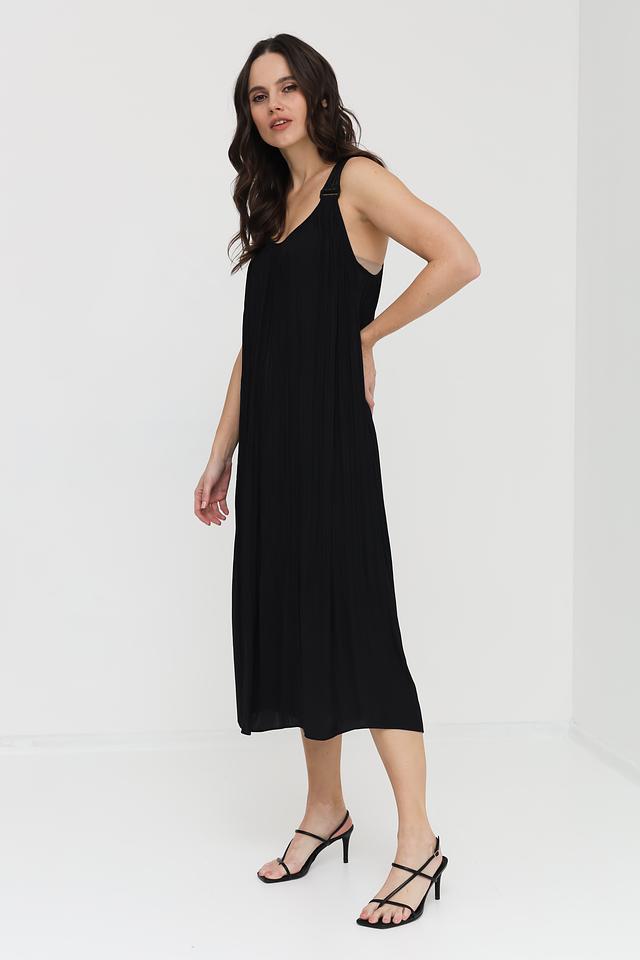 Платье имеет тонкие бретели и V-образный вырез, что придает ему женственность и изящество. Длина миди делает его универсальным для различных случаев – от повседневной прогулки до вечернего мероприятия. Текстурированная ткань придает платью особый шарм.