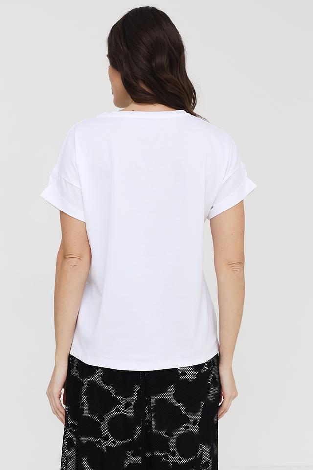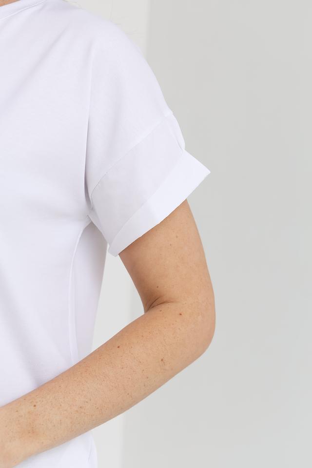 Футболка Marc Cain Collections белая с рукавами-манжетами