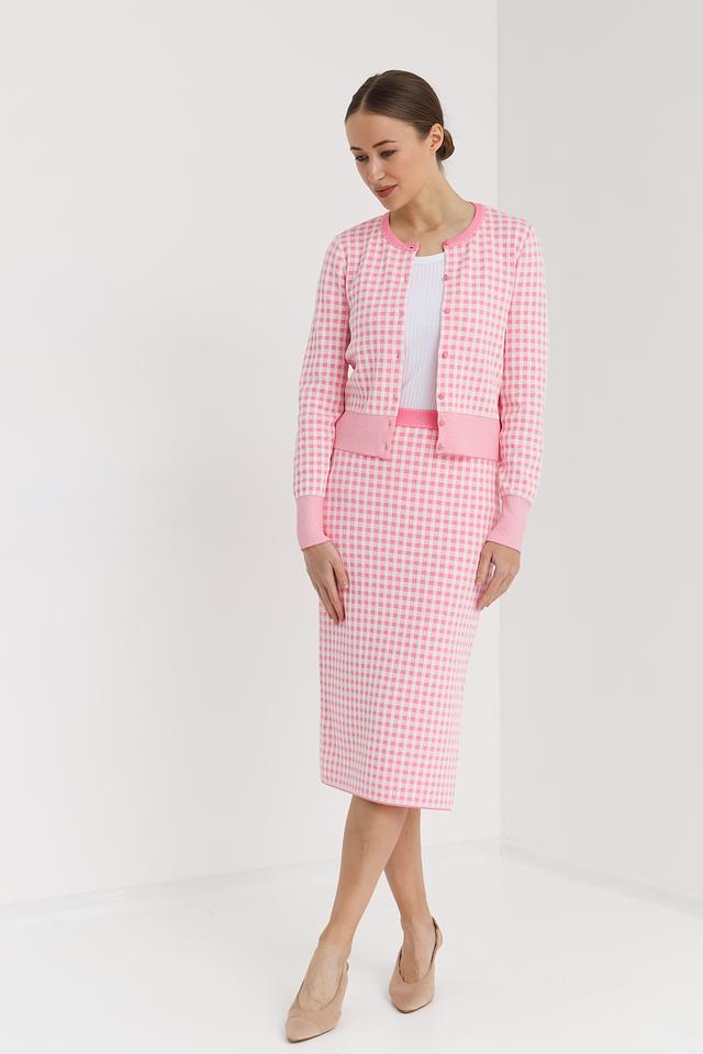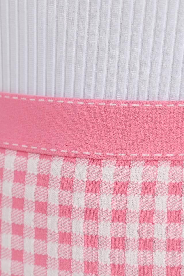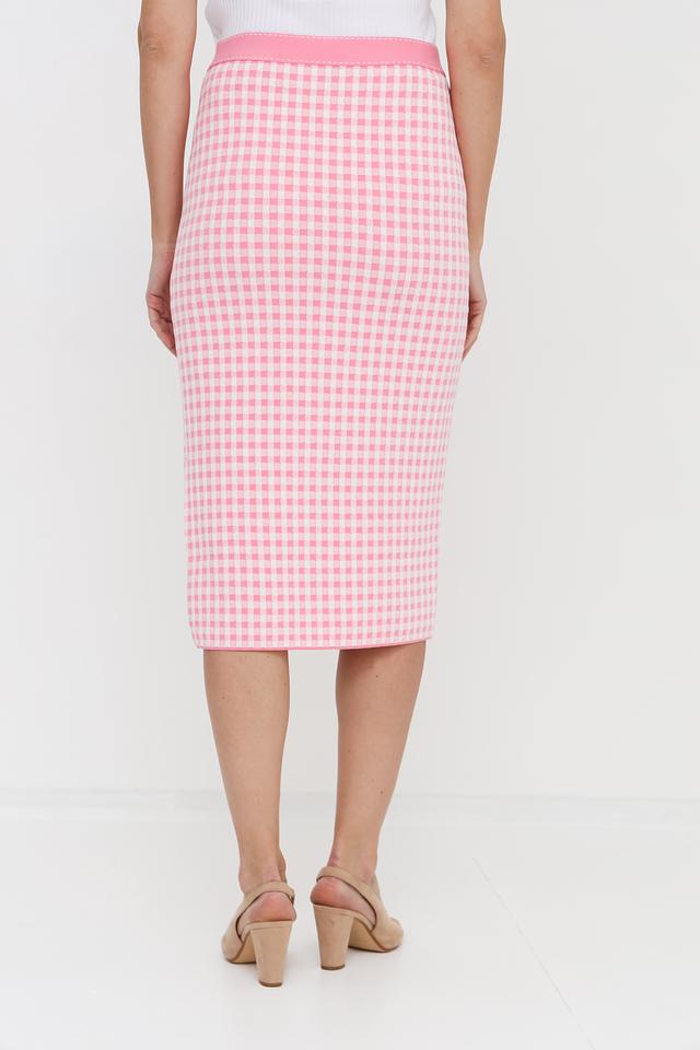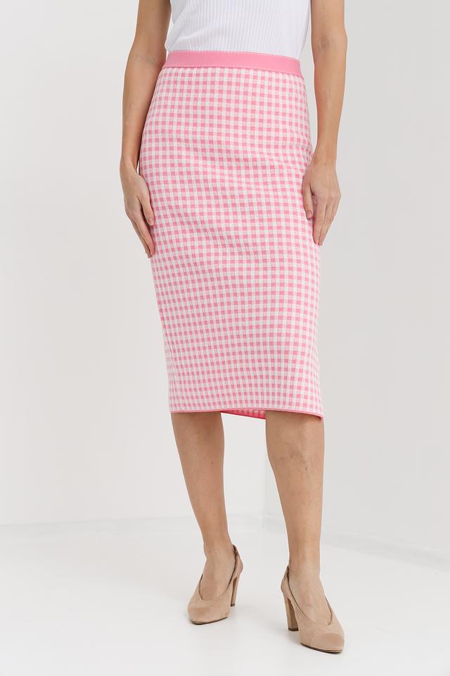 Эта юбка от Marc Cain Collections – идеальный выбор для создания стильного и женственного образа. Модель выполнена в классическую клетку, сочетающую в себе нежно-розовый и белый цвета.