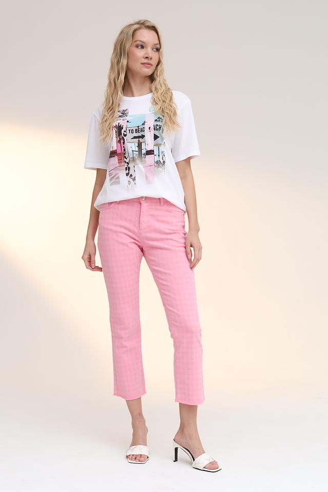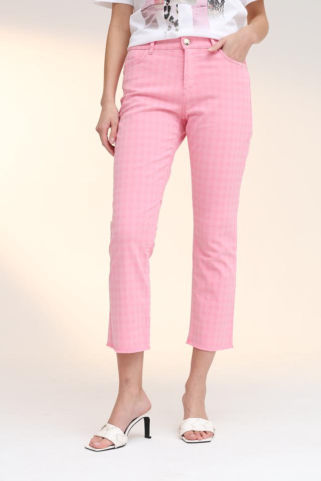 Эти джинсы от Marc Cain сочетают в себе современный дизайн и высокое качество материалов. Модель выполнена в нежном розовом цвете с классическим клетчатым принтом, что делает их универсальным элементом гардероба.