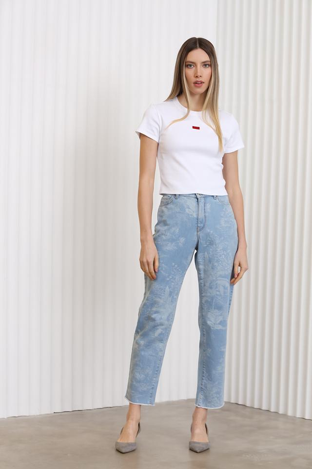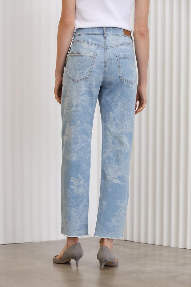 Джинсы Marc Cain голубого цвета с оригинальным цветочным принтом — стильное и комфортное решение для повседневного образа. Модель выполнена из качественного хлопка с добавлением эластана для лучшей посадки. Состав: хлопок 99%, эластан 1%