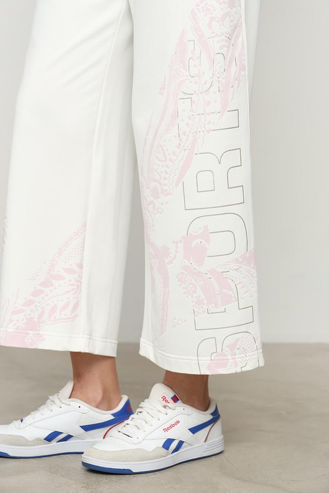 Белые спортивные брюки от Marc Cain Sports с оригинальным принтом. Модель выполнена из мягкой ткани с добавлением эластана для комфортной посадки и свободы движений. Идеальный выбор для активного образа жизни. Состав: полиамид 64%, хлопок 33%, эластан 3%