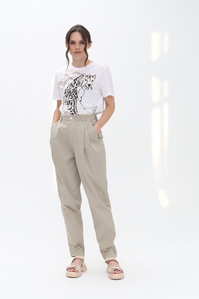Особенностью данной модели является эффектный принт тигра, выполненный в графичной манере. Принт придает футболке индивидуальность и делает ее ярким акцентом в вашем гардеробе. Крой футболки свободный, что обеспечивает свободу движений и позволяет создавать различные комбинации с другой одеждой.