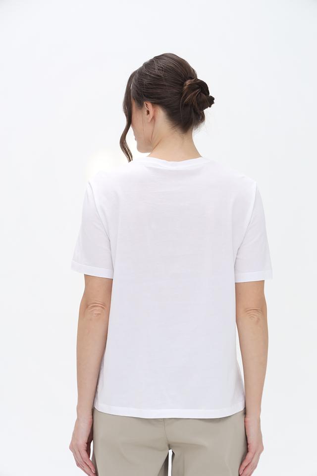 Эта белая футболка от Marc Cain – идеальный выбор для создания непринужденного, но стильного образа. Футболка выполнена из высококачественного 100% хлопка, что гарантирует максимальный комфорт в течение всего дня.