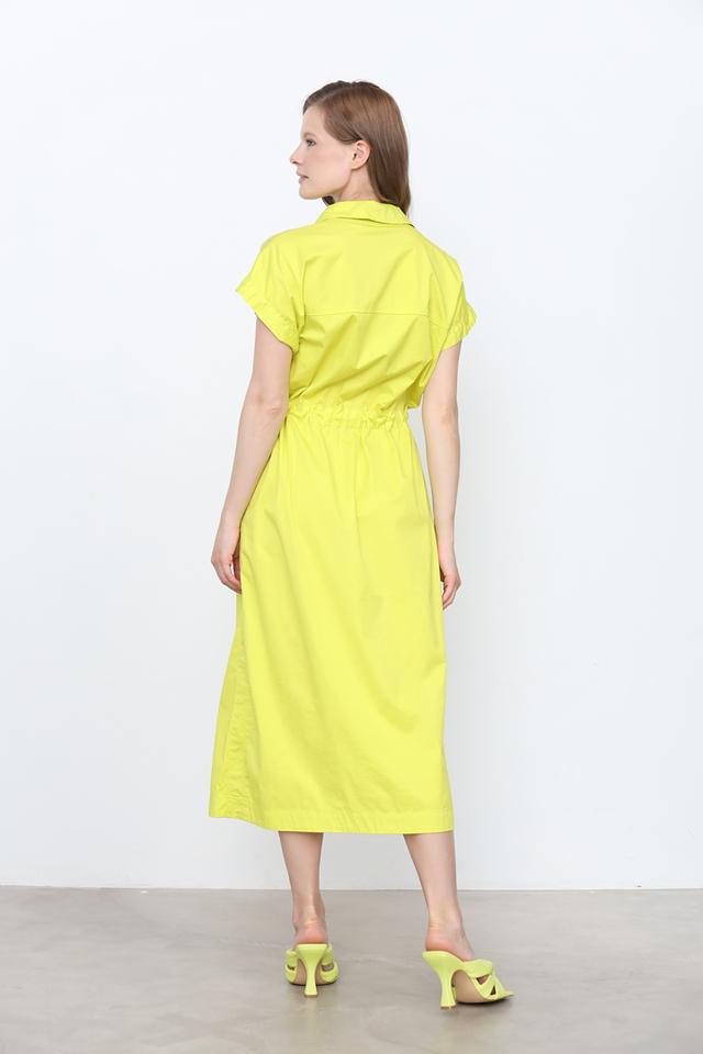 Платье имеет короткие рукава и боковые карманы. Яркий цвет лайм делает это платье отличным выбором для создания стильного и запоминающегося образа. Состав: 96% хлопок, 4% эластан.