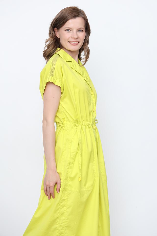 Платье Marc Cain цвета лайм – это стильное и комфортное решение для повседневного образа. Модель выполнена из хлопка с добавлением эластана, имеет воротник рубашечного типа, завязку на талии и боковые карманы. Состав: хлопок 96%, эластан 4%