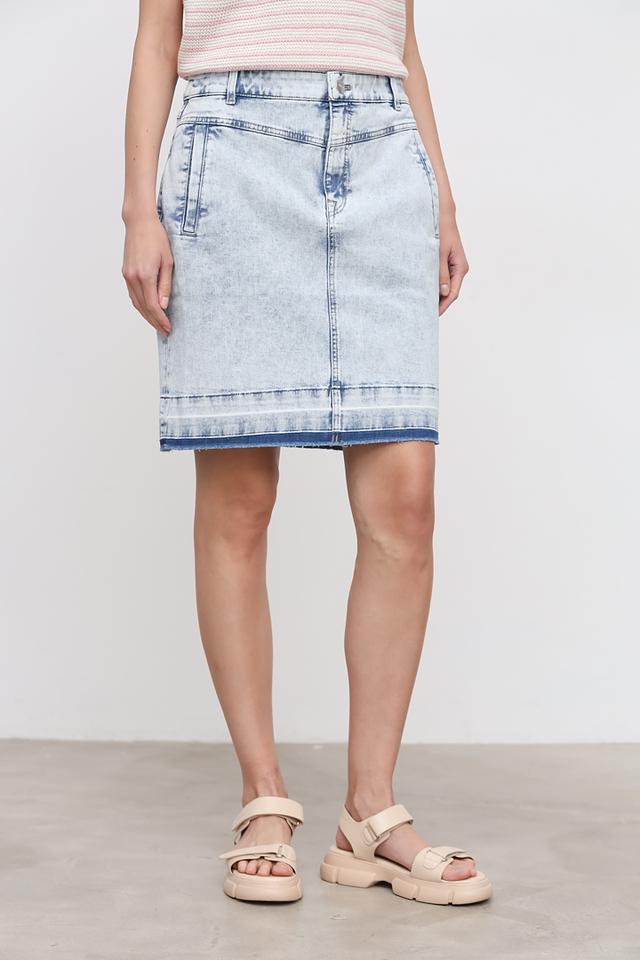 Джинсовая юбка Marc Cain голубого цвета – стильная и удобная модель для повседневного образа. Классический крой и эффектная текстура денима делают эту юбку универсальным элементом гардероба. Состав: хлопок 92%, эластомультиэстер 6%, эластан 2%