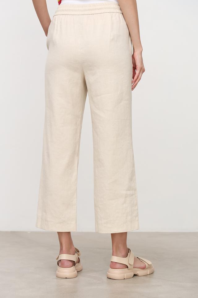 Благодаря своему лаконичному дизайну и нейтральному бежевому цвету, эти брюки легко сочетаются с различными элементами одежды, позволяя создавать разнообразные образы – от повседневных до более элегантных. Состав: 65% лен, 34% хлопок, 1% эластан.