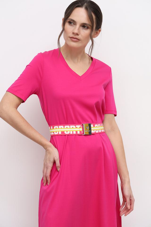 Этот ремень от Marc Cain – идеальный способ подчеркнуть талию и добавить яркий акцент в ваш гардероб. Ремень выполнен в насыщенном фуксиевом цвете, который эффектно контрастирует с белыми и желтыми полосками, создавая динамичный и запоминающийся образ.