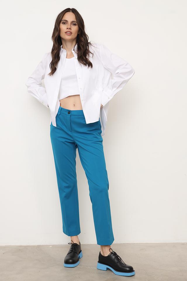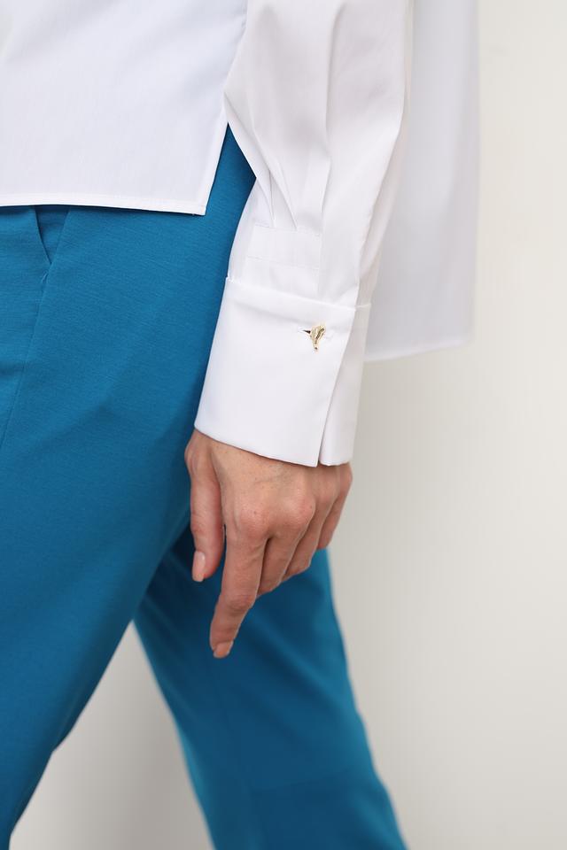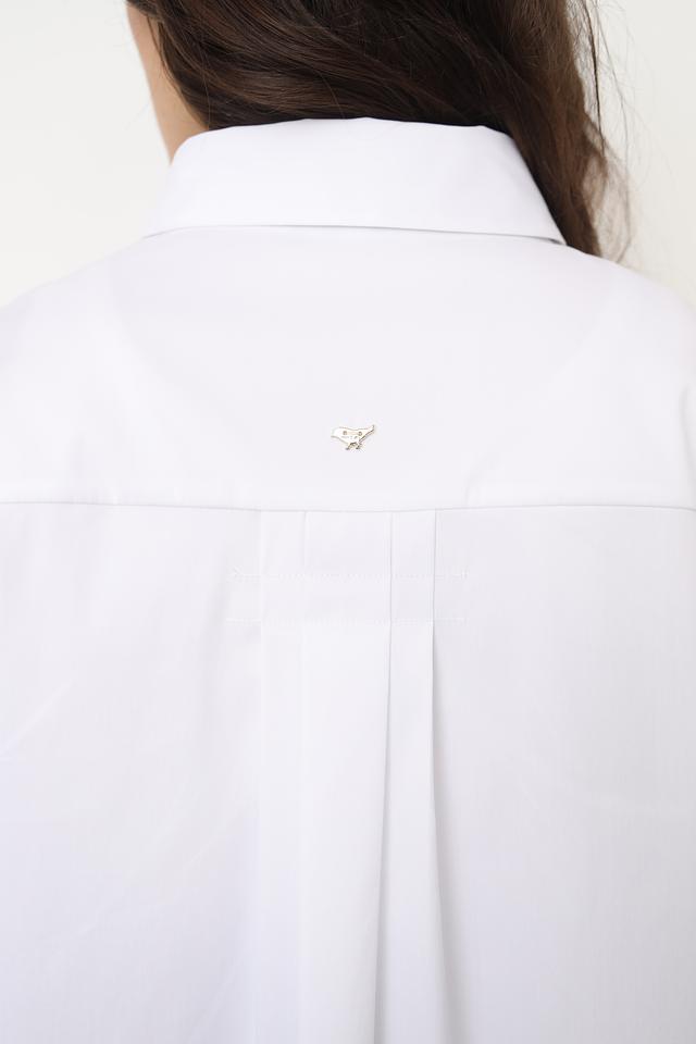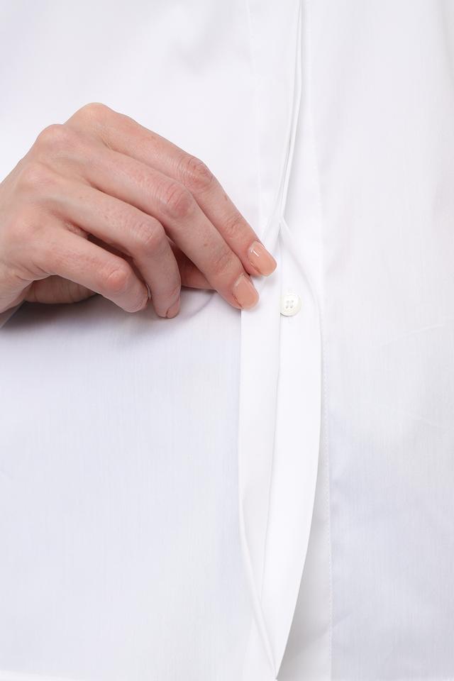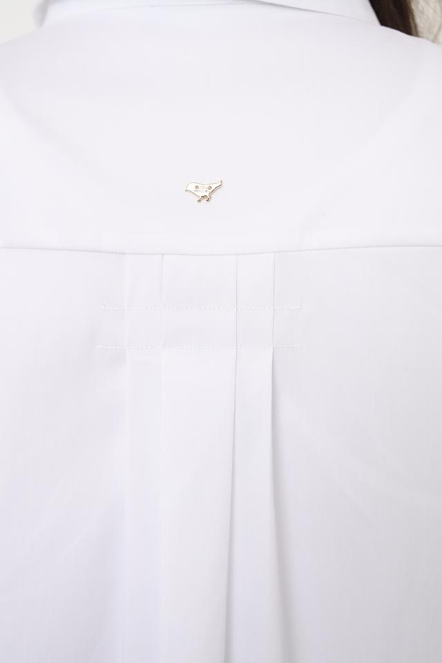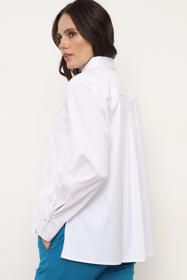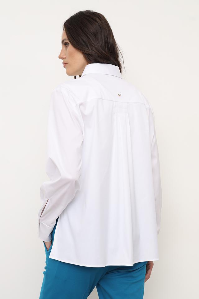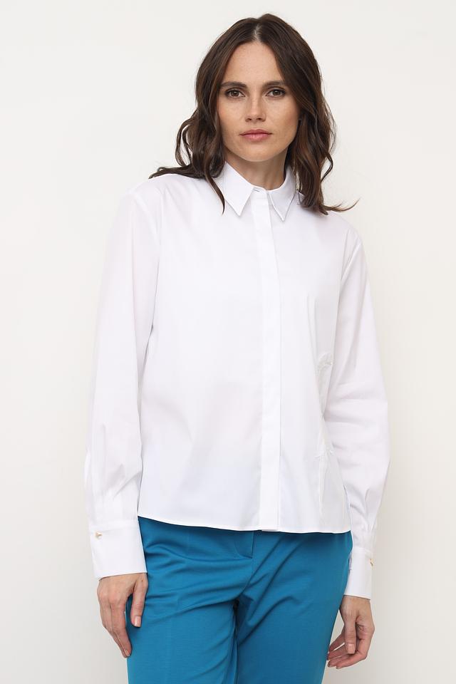 Рубашка имеет классический прямой крой, длинные рукава и отложной воротник. Минималистичный дизайн без лишних деталей делает ее универсальной для сочетания с различными элементами гардероба – от деловых костюмов до повседневных джинсов.