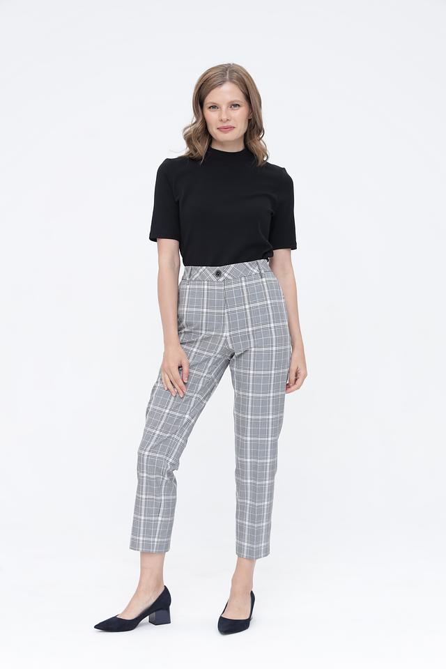 Брюки выполнены из высококачественного сочетания полиэстера, вискозы и эластана, что обеспечивает комфортную посадку и приятные тактильные ощущения. Ткань хорошо держит форму и не мнется.