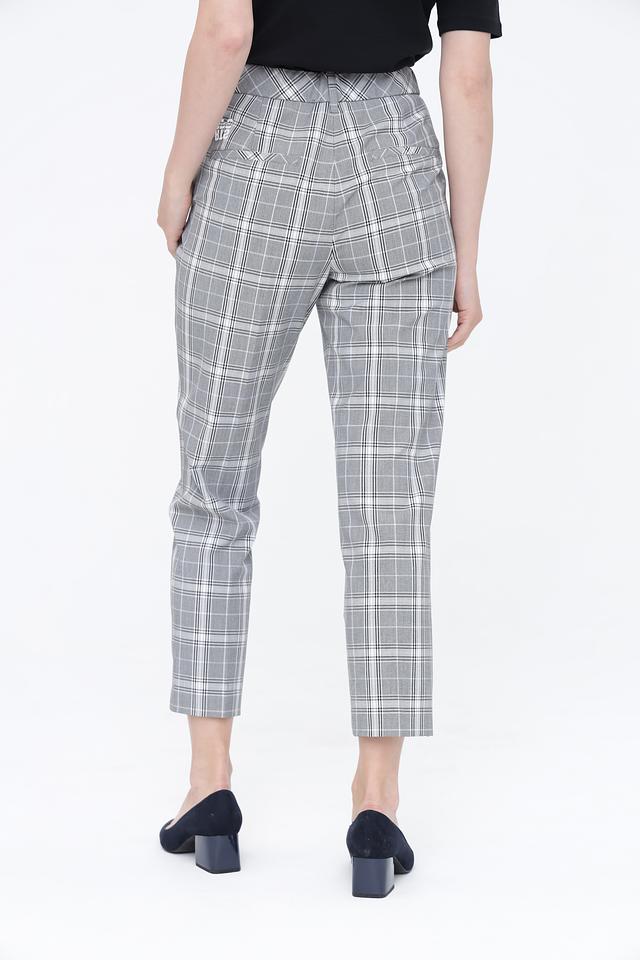 Стильные брюки Marc Cain серого цвета в классическую клетку. Модель выполнена из приятной ткани с добавлением вискозы и эластана, обеспечивающих комфорт и свободу движений. Идеальный выбор для создания элегантного и современного образа. Состав: полиэстер 66%, вискоза 28%, эластан 6%