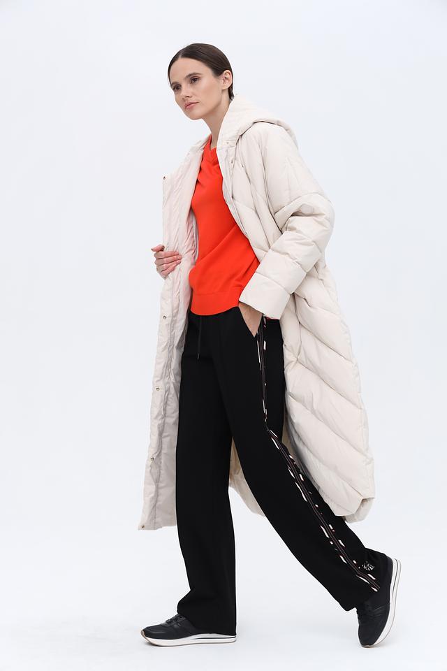 Особенностью данной модели является стеганая текстура, придающая ей современный и модный вид. Пальто имеет удобный капюшон, который защитит от ветра и непогоды. Застежка-молния позволяет быстро и легко надевать и снимать пальто.