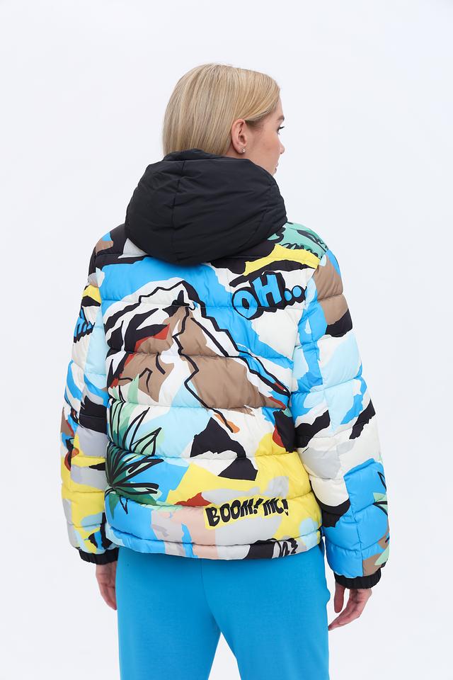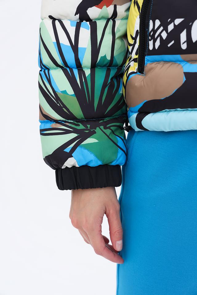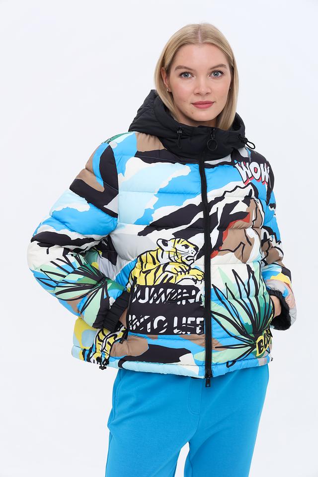 Эта яркая куртка от Marc Cain Sports – отличный выбор для тех, кто ценит комфорт и индивидуальность. Изготовленная из 100% полиэстера, она обеспечивает легкость и тепло. Куртка имеет стеганую фактуру и эффектный разноцветный принт с изображением тигра, пальм и комиксных элементов.