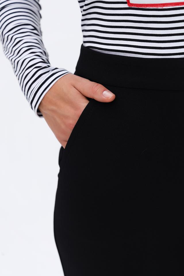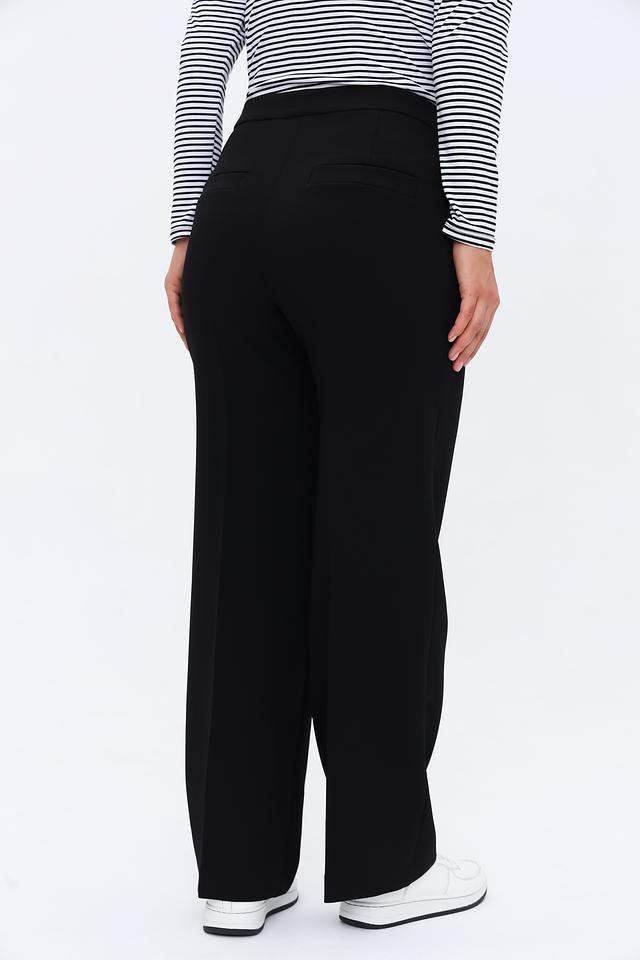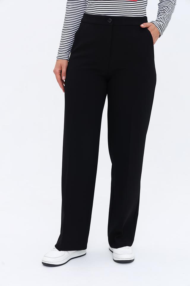 Брюки имеют прямой крой и стандартную посадку по фигуре, обеспечивая комфорт и свободу движений. Ткань, состоящая из 92% полиэстера и 8% эластана, отличается высокой износостойкостью, приятной на ощупь и хорошо держит форму.