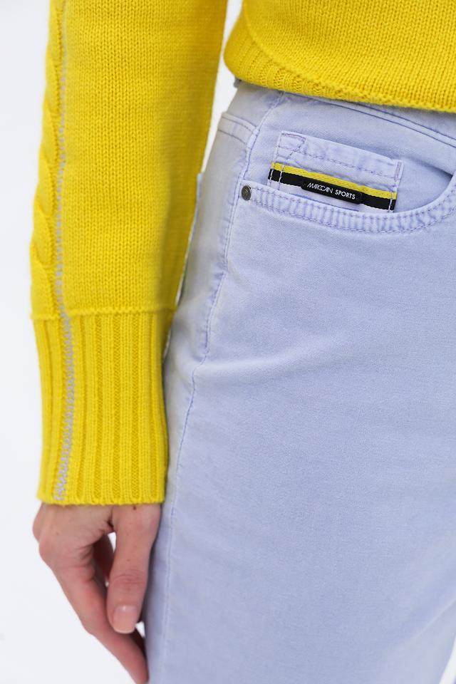 Светло-лиловые брюки от Marc Cain — стильное и комфортное решение для повседневного гардероба. Модель выполнена из мягкого хлопка с добавлением модала и эластана, обеспечивающих удобную посадку и свободу движений. Состав: хлопок 79%, модал 19%, эластан 2%