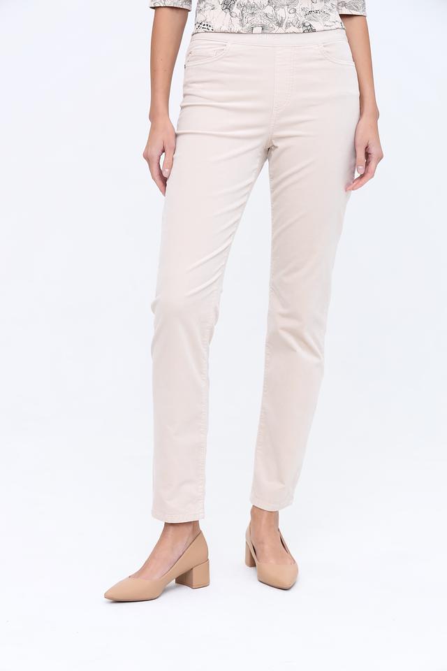 Брюки выполнены в нежном бежевом цвете, который легко сочетается с другими элементами одежды. Материал – сочетание хлопка, модала, полиэстера и эластана – обеспечивает мягкость, приятные тактильные ощущения и хорошую посадку по фигуре.