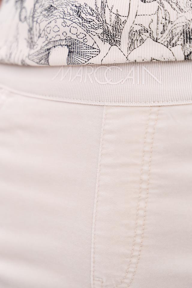 Бежевые брюки от Marc Cain – это стильное и комфортное решение для повседневного гардероба. Модель выполнена из мягкой ткани с добавлением хлопка и модала, обеспечивающей удобную посадку и приятные ощущения. Эластичный пояс гарантирует свободу движений. Состав: хлопок 54%, модал 35%, полиэстер 8%, эластан 3%