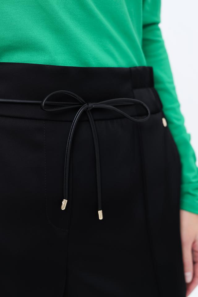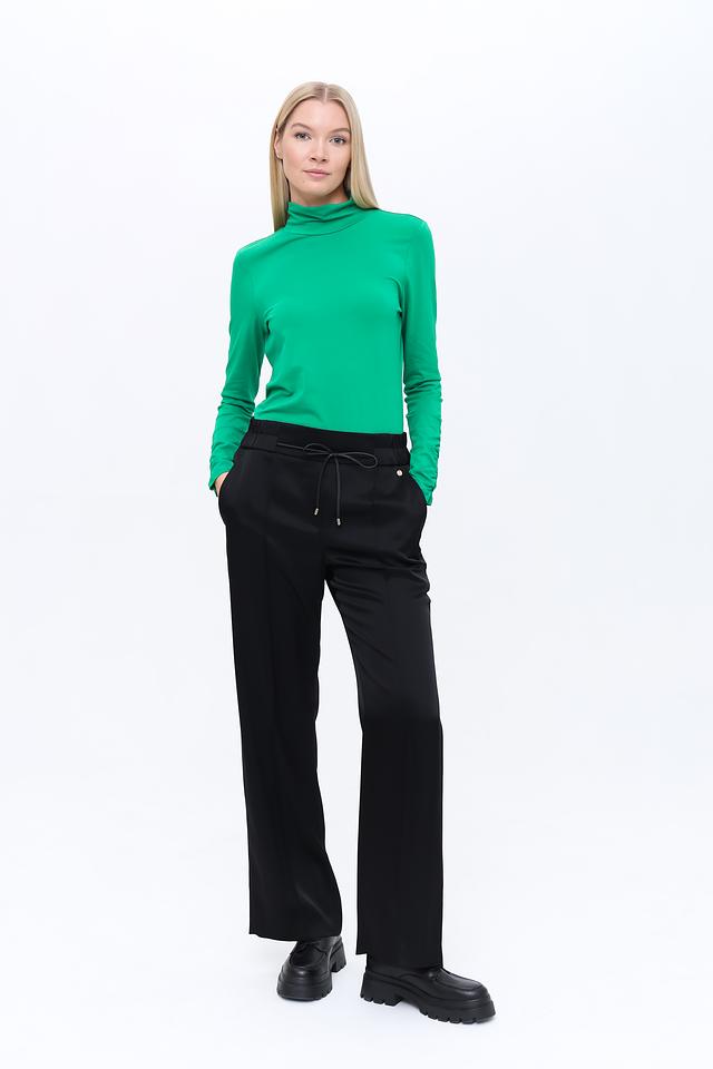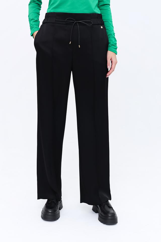 Чёрные брюки от Marc Cain – это элегантность и комфорт в одном изделии. Прямой крой и пояс на завязках обеспечивают идеальную посадку и свободу движений. Модель выполнена из высококачественного триацетата с добавлением эластана. Состав: триацетат 87%, эластан 13%