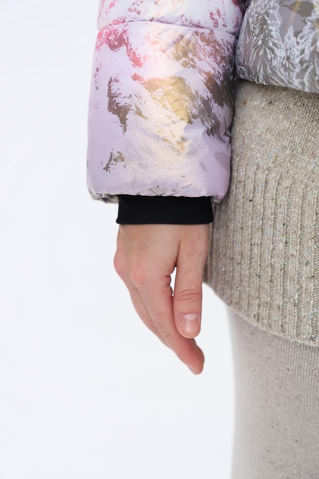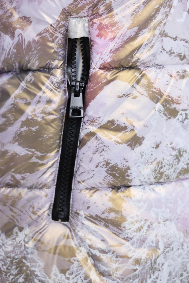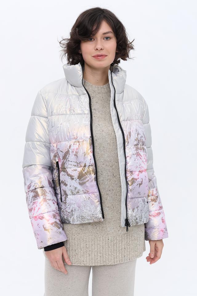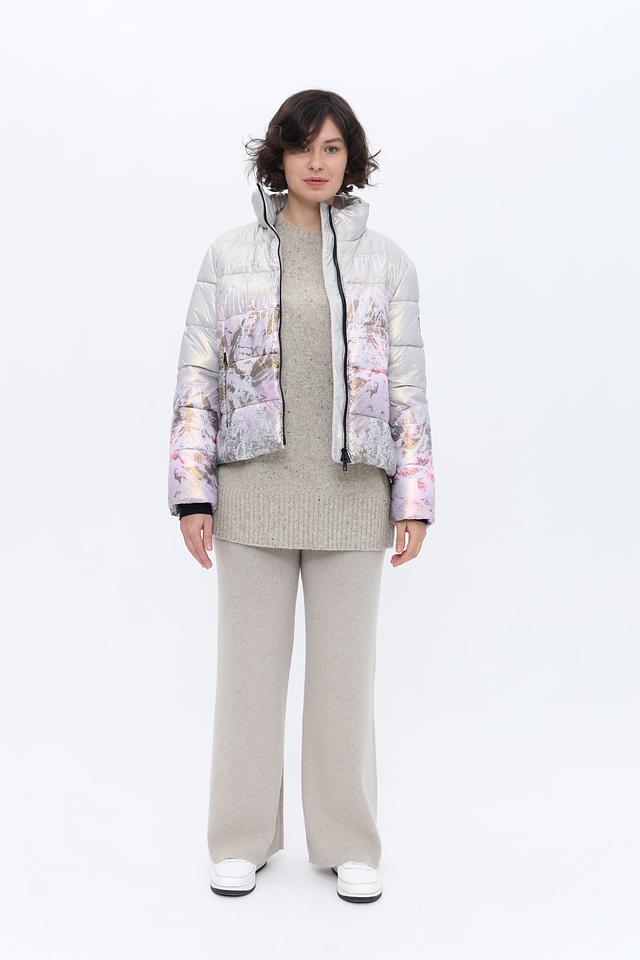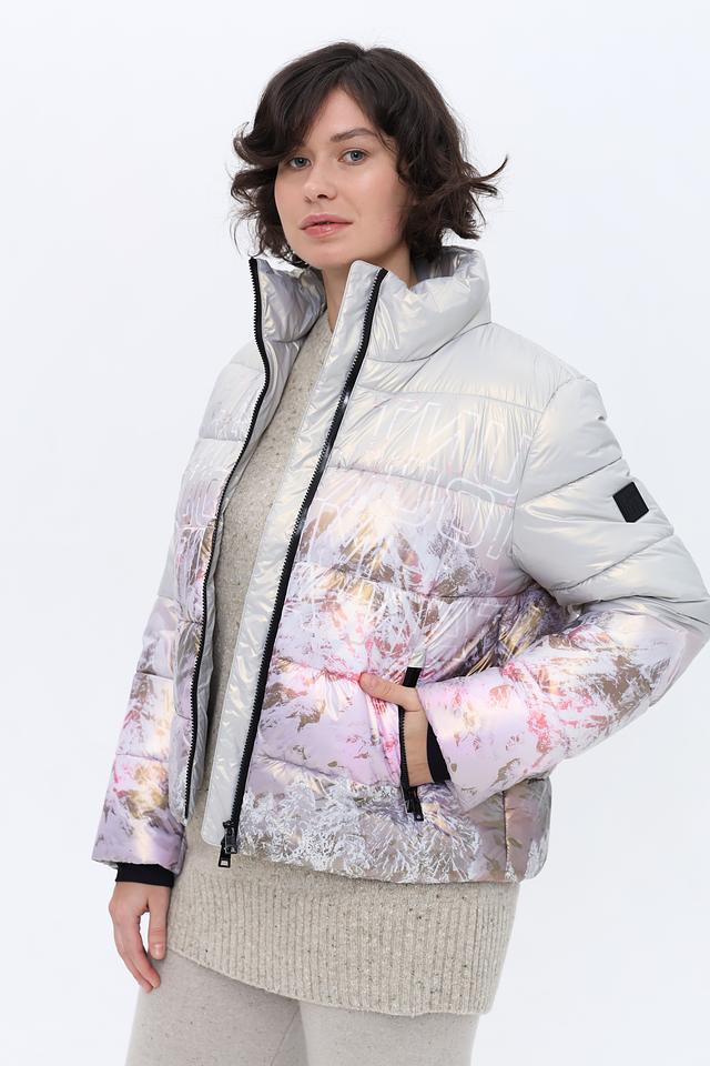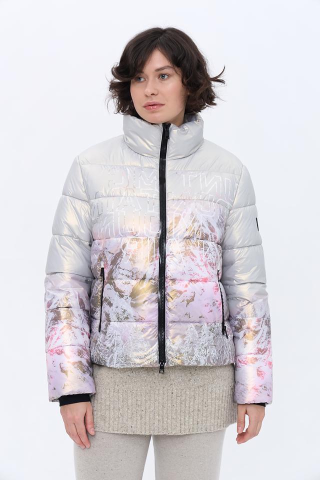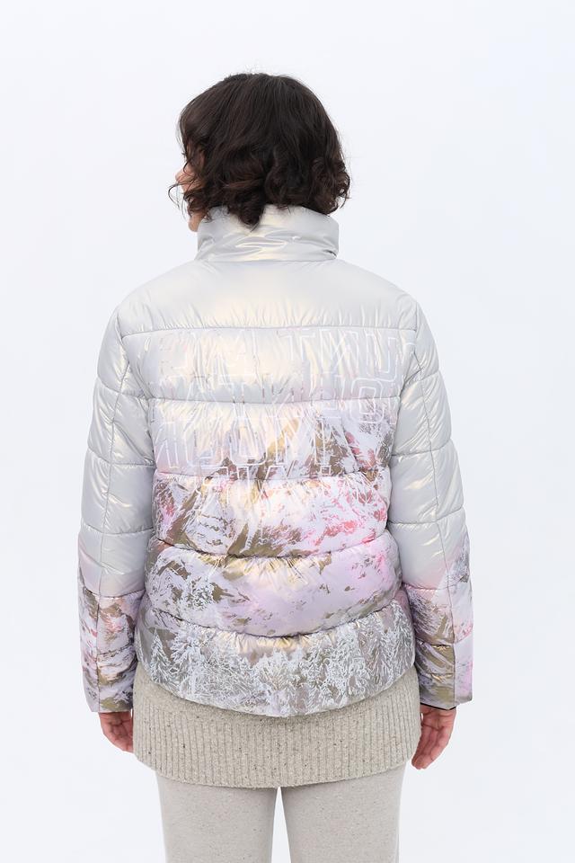 Дизайн куртки выполнен в уникальном стиле с сочетанием серебристого цвета и оригинального принта, который придает ей неповторимый вид. Высокий воротник защищает от ветра, а застежка-молния обеспечивает удобство ношения.