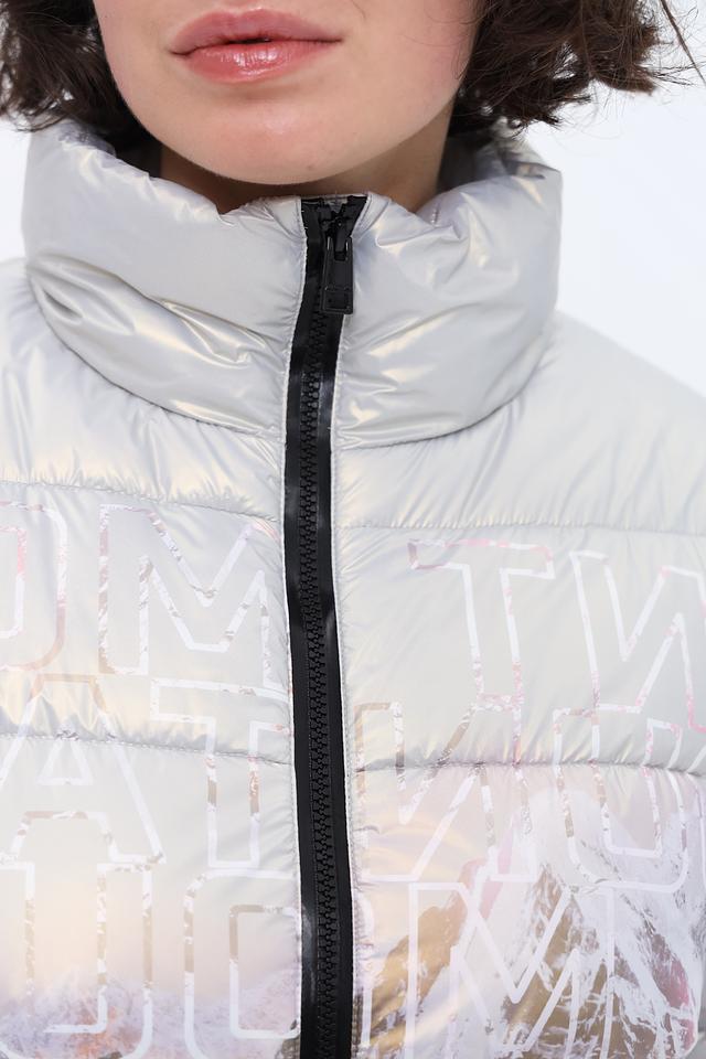 Женская куртка Marc Cain Sports серебристого цвета с оригинальным принтом – это стильное и практичное решение для прохладной погоды. Утеплитель из 100% полиамида обеспечивает комфорт и защиту от ветра. Состав: полиамид 100%
