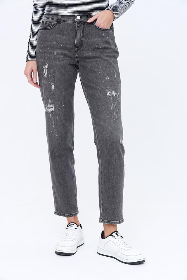 Серые джинсы Marc Cain в стиле casual с эффектом потертостей и декоративными элементами. Модель выполнена из хлопка с добавлением эластана для комфортной посадки и свободы движений. Состав: хлопок 99%, эластан 1%