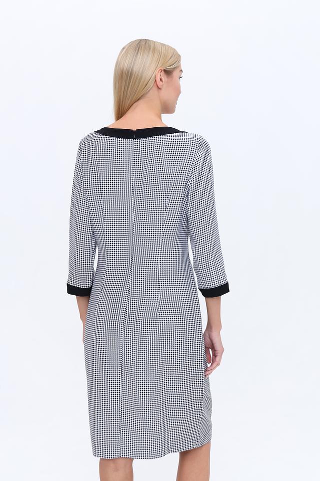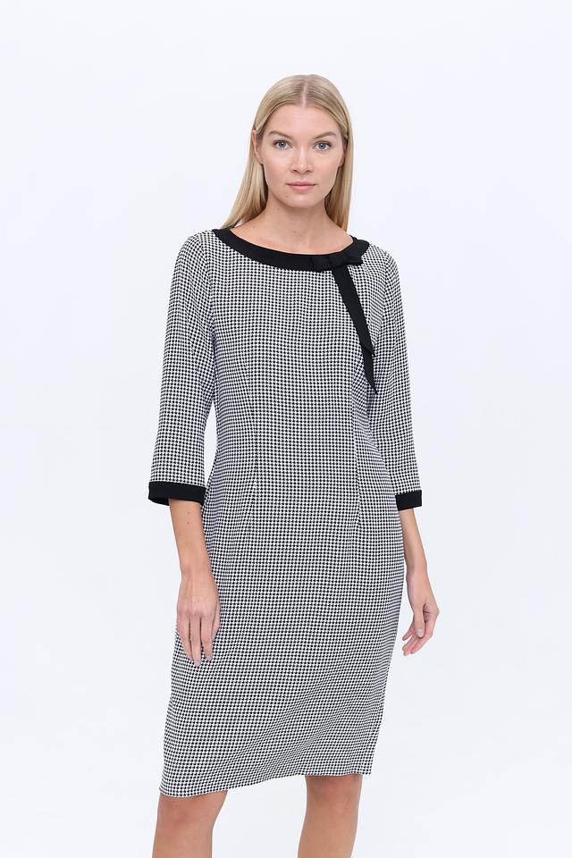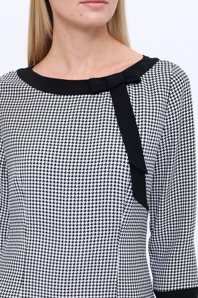 Платье Marc Cain черного и белого цвета в классическую клетку "гусиная лапка" с декоративным бантом. Элегантное платье приталенного силуэта с рукавами 3/4 идеально подойдет для создания стильного образа. Состав: вискоза 100%