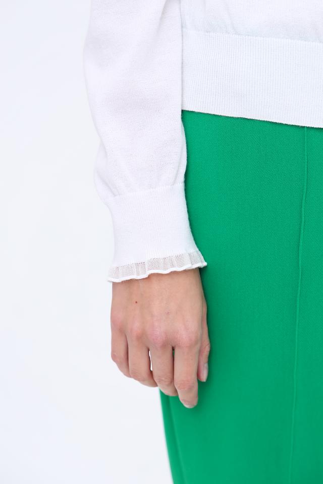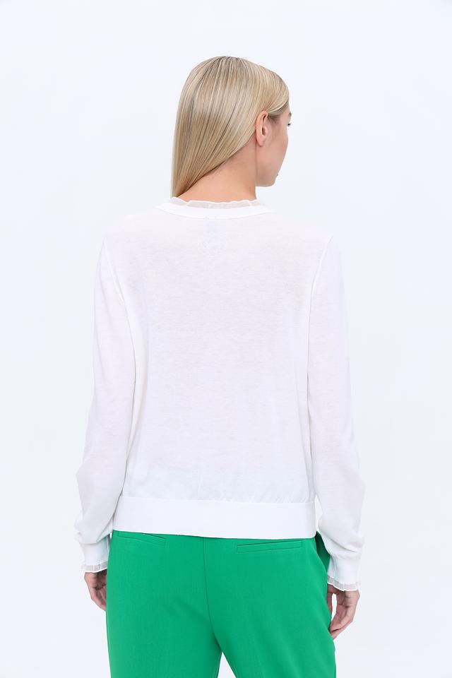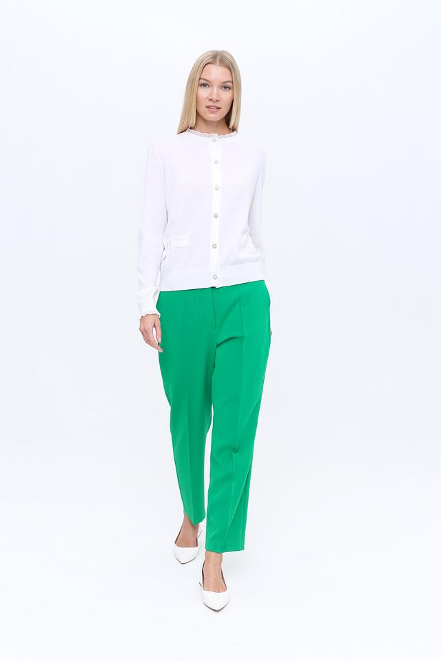 Особый шарм жакету придают декоративные рюши на горловине и манжетах рукавов. Это делает модель более женственной и изысканной. Жакет идеально сочетается с брюками, юбками и платьями, позволяя создавать разнообразные образы.
