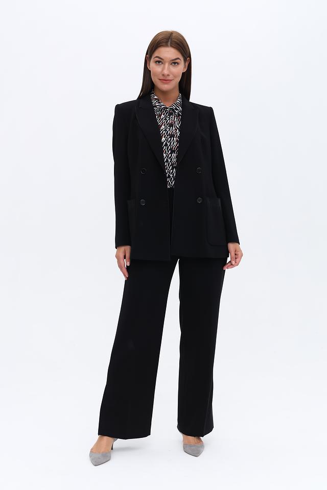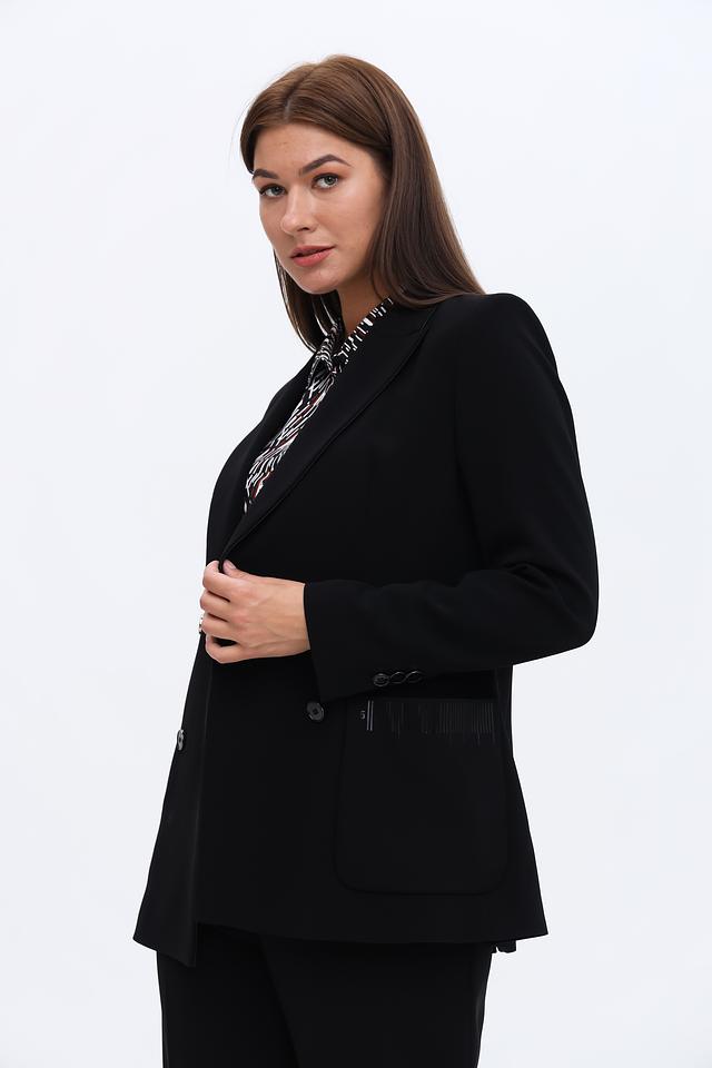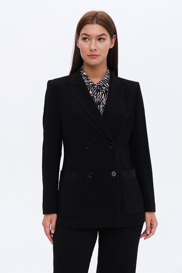 Жакет имеет два функциональных кармана с клапанами, которые добавляют ему практичности и завершенности. Данная модель идеально сочетается с брюками, юбками и платьями, позволяя создавать разнообразные образы для работы, встреч и особых случаев.