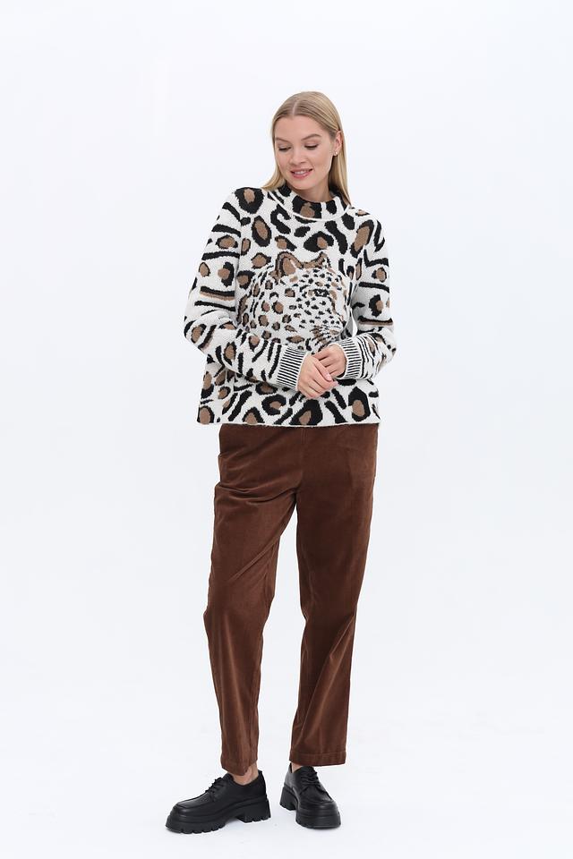 Этот пуловер станет отличным выбором для создания повседневного или вечернего образа. Его можно сочетать с брюками, юбками или джинсами. Леопардовый принт добавит вашему образу нотку дикости и оригинальности.
