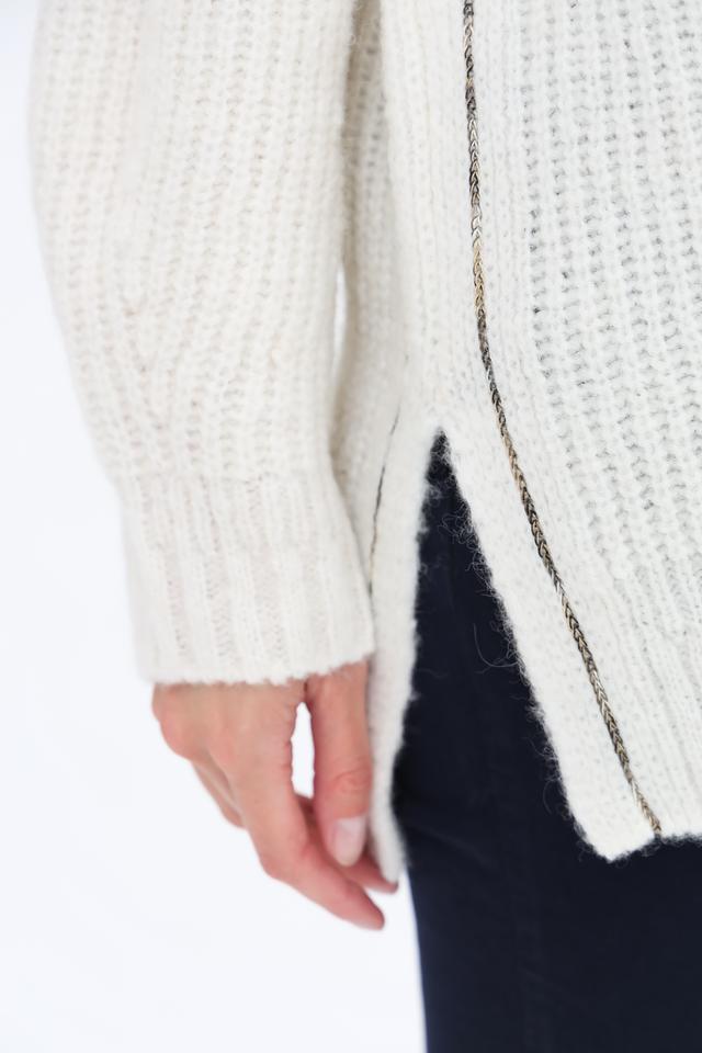 Декоративные шнурки по бокам добавляют оригинальности и позволяют регулировать силуэт. Состав: 45% шерсть, 30% альпака, 25% полиамид. Этот пуловер идеально подойдет для создания повседневных и элегантных образов.