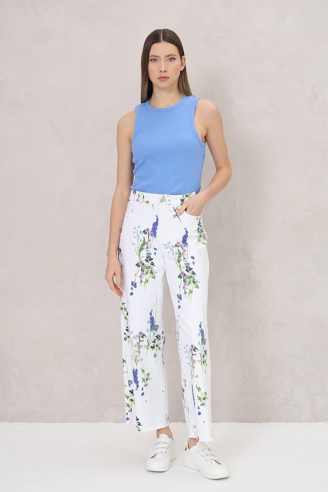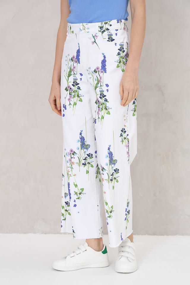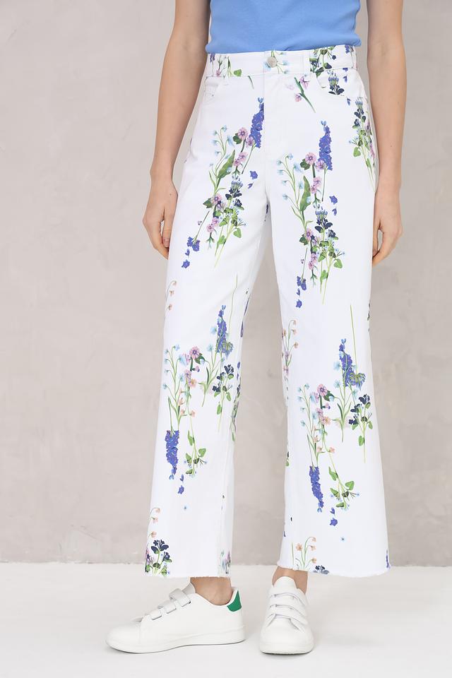 Эти джинсы от Marc Cain станут ярким акцентом вашего образа. Выполнены в белом цвете и украшены нежным цветочным принтом, состоящим из различных оттенков синего, розового и зеленого.