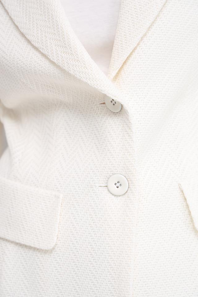 Бежевый жакет Marc Cain Collections из фактурного материала. Классический крой с лацканами и застежкой на пуговицы. Идеальный выбор для создания элегантного образа. Состав: хлопок 100%