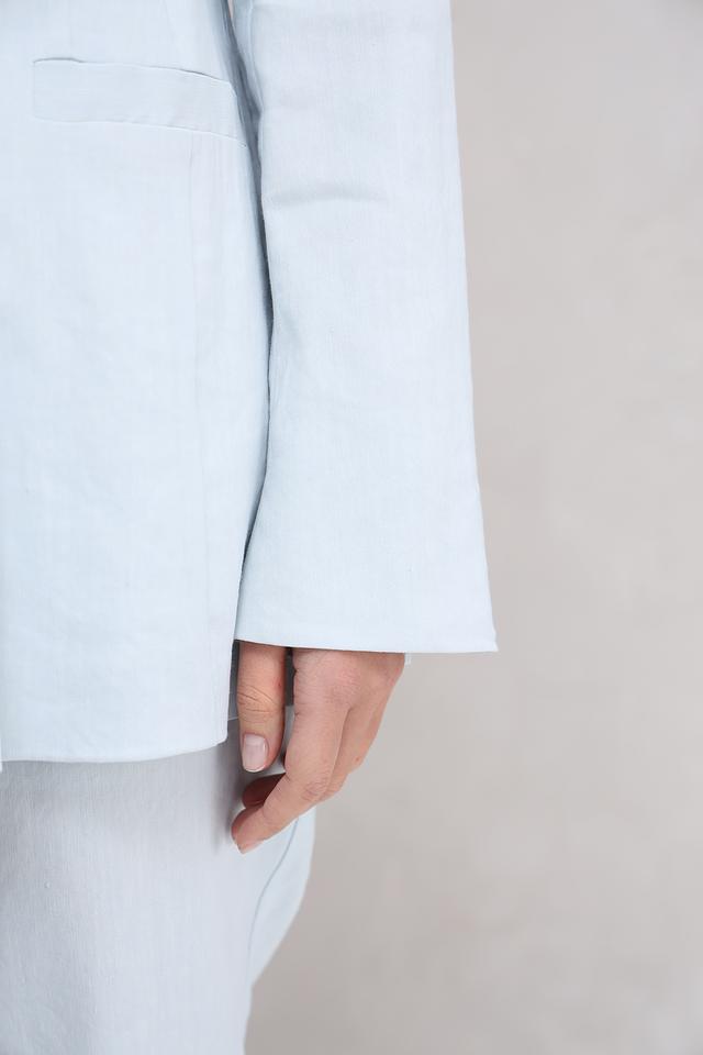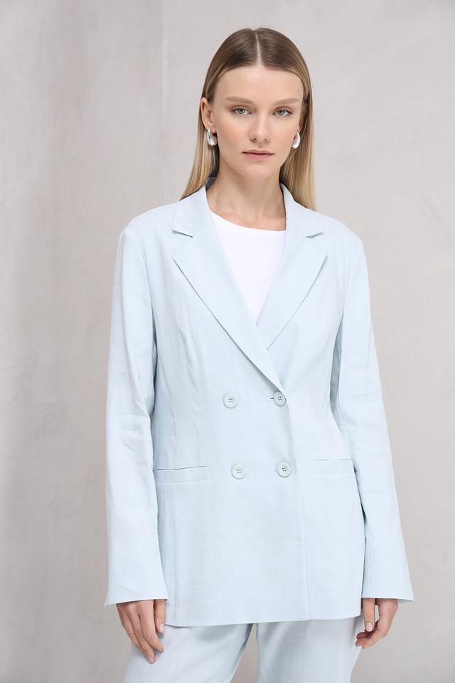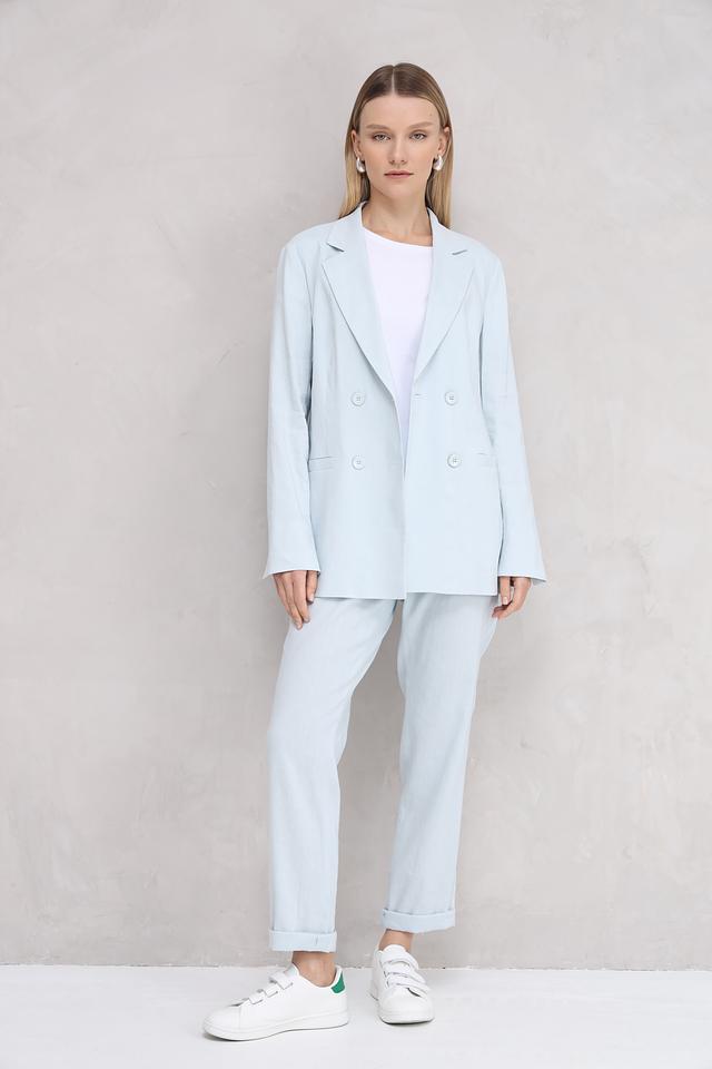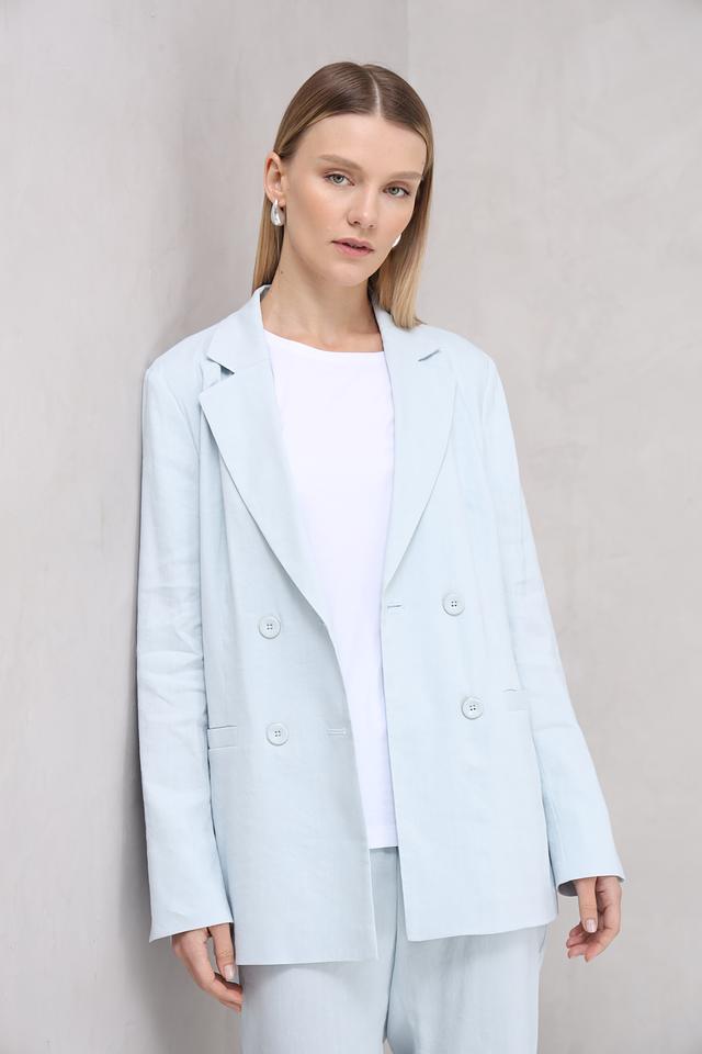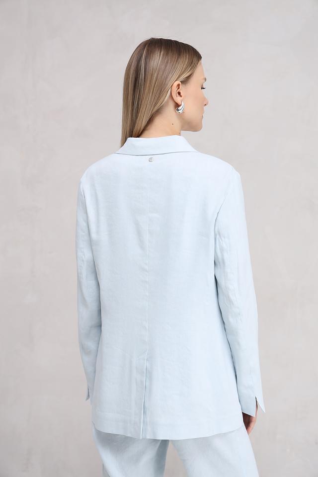 Жакет Marc Cain голубого цвета – это стильное и элегантное решение для создания современного образа. Классический крой и двубортная застёжка придают жакету изысканность, а лёгкая льняная ткань обеспечивает комфорт в тёплую погоду. Состав: лен 59%, вискоза 39%, эластан 2%