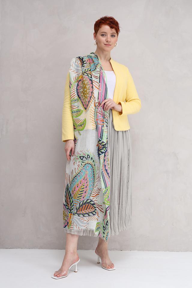 Этот шарф от Marc Cain – идеальный аксессуар для создания яркого и запоминающегося образа. Шарф выполнен в светло-серой цветовой гамме и украшен красочным цветочным принтом, включающим в себя оттенки зеленого, голубого, розового и оранжевого.
