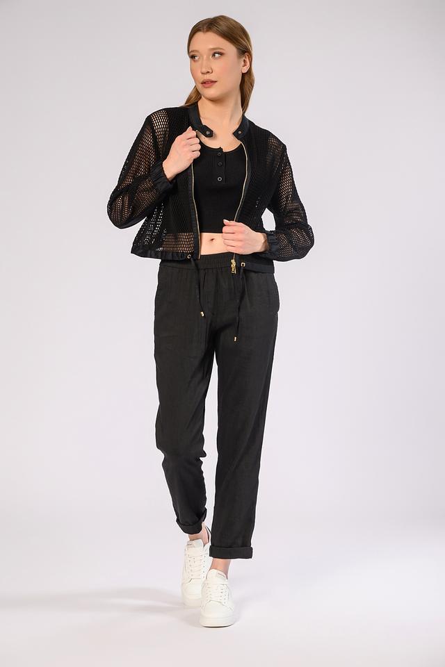 Чёрный жакет Marc Cain из сетчатой ткани с застёжкой на молнию. Модель выполнена из 100% хлопка и имеет классический крой. Жакет станет стильным дополнением к вашему гардеробу. Состав: хлопок 100%