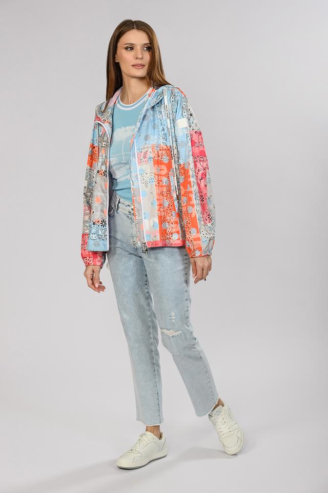 Женская куртка Marc Cain светло-голубого цвета с ярким принтом пейсли станет стильным дополнением к вашему гардеробу. Модель на молнии с капюшоном и удобной посадкой. Состав: полиэстер 100%