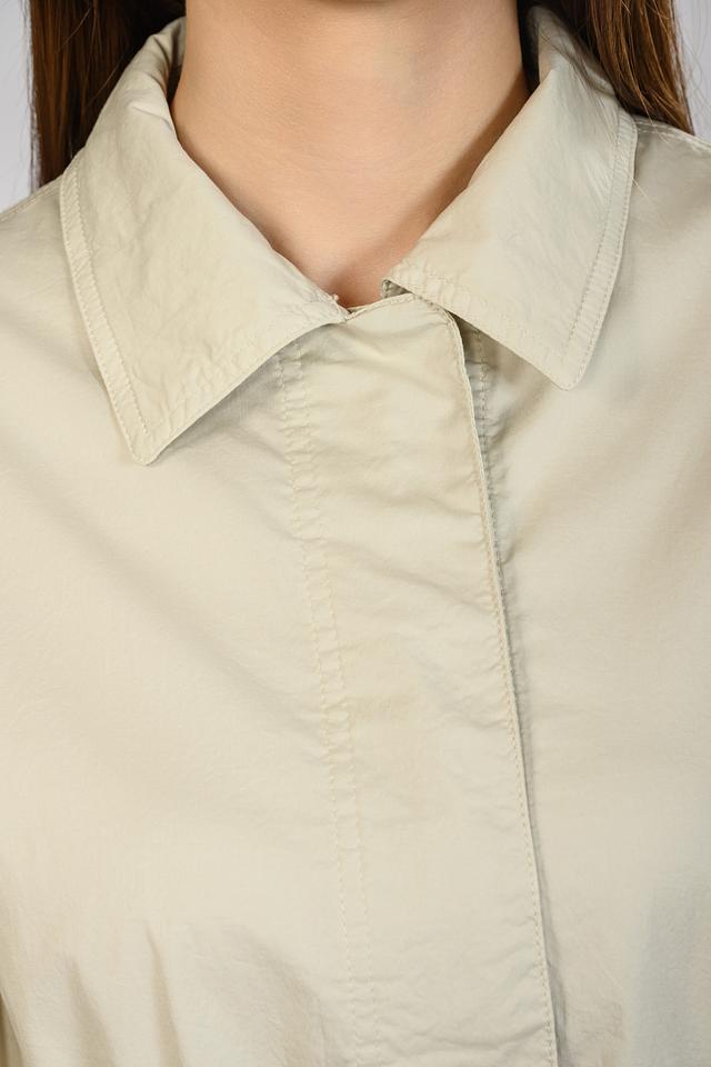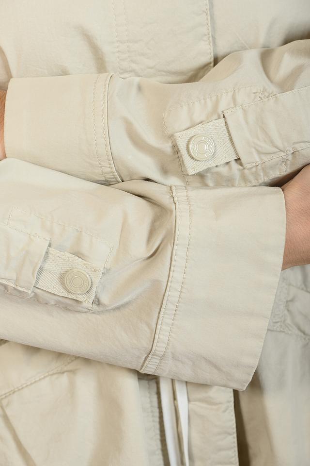 Длинные рукава имеют манжеты с застежкой на пуговицы. Накладные карманы добавляют практичности и функциональности.