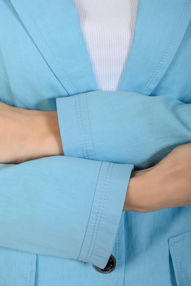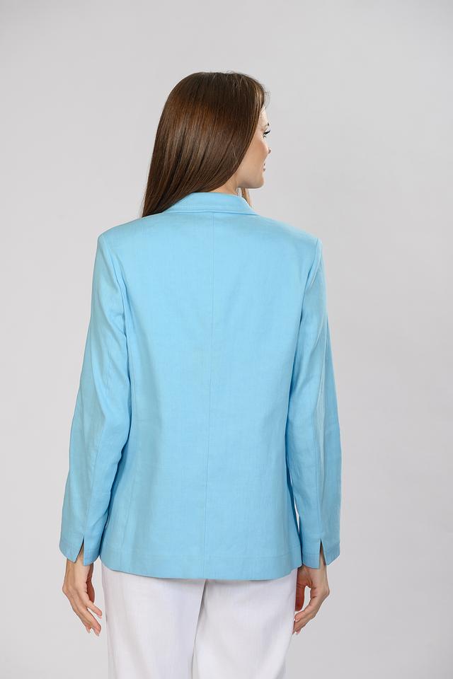 Нежный голубой цвет жакета легко сочетается с различными элементами гардероба, позволяя создавать разнообразные образы – от деловых до повседневных. Состав ткани обеспечивает хорошую воздухопроницаемость и приятные тактильные ощущения.