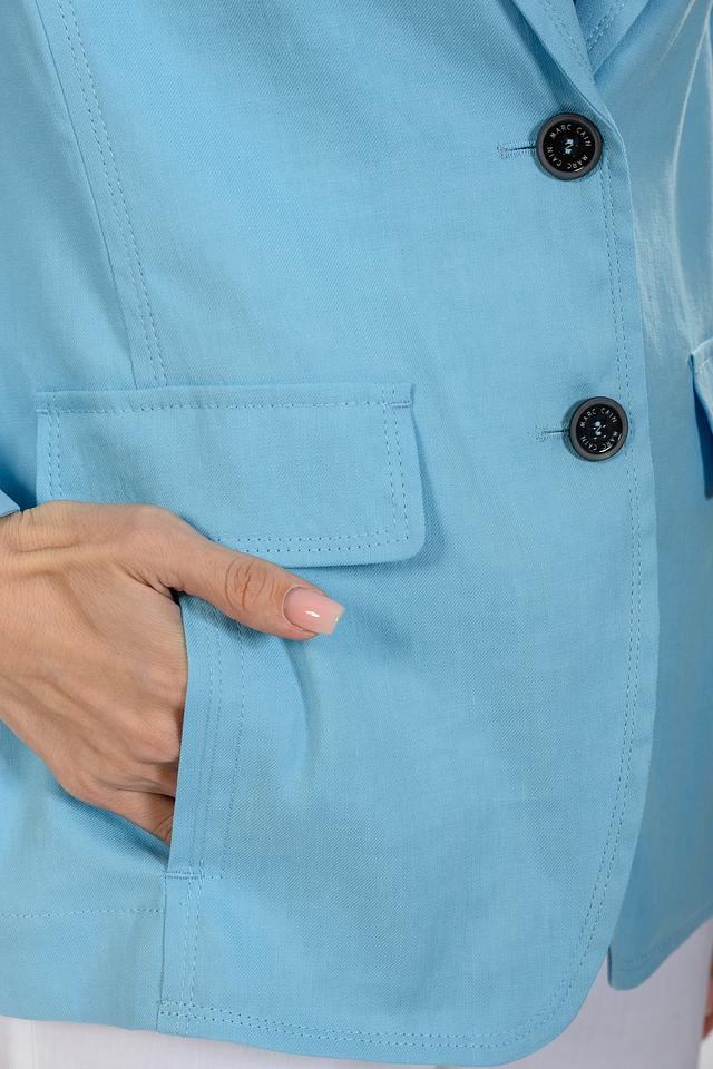 Голубой жакет Marc Cain Sports из льна с хлопком – стильное и комфортное решение для создания повседневных образов. Прямой крой и лаконичный дизайн делают этот жакет универсальным элементом гардероба. Состав: лен 65%, хлопок 34%, эластан 1%