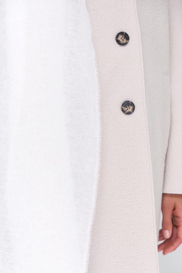 Шарф имеет прямоугольную форму и отличается легкой, воздушной текстурой. Преобладающий цвет – белый, что делает его универсальным аксессуаром, легко сочетаемым с различными стилями одежды.