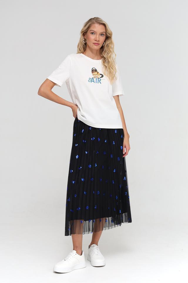 Белая футболка Marc Cain из 100% хлопка с оригинальным принтом. Модель имеет прямой крой и короткие рукава, идеально подходит для создания повседневных образов. Состав: хлопок 100%