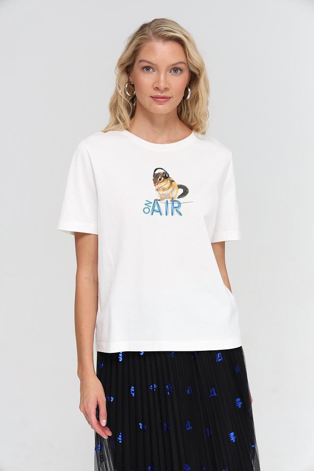 Футболка имеет классический прямой крой, который подходит для любой фигуры. Короткие рукава делают ее идеальным выбором для теплой погоды. Главной особенностью этой модели является яркий и оригинальный принт с изображением хомяка и надписью "AIR".