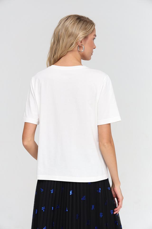 Благодаря своему лаконичному дизайну и универсальному белому цвету, эта футболка легко сочетается с различными элементами одежды – от джинсов и шорт до юбок и брюк. Она станет незаменимой вещью в вашем повседневном гардеробе, позволяя создавать стильные и комфортные образы.