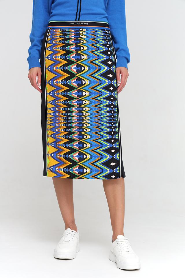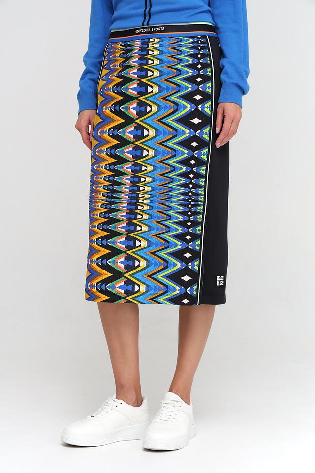 Юбка выполнена из высококачественного полиамида (86%) и эластана (14%), что обеспечивает ей отличную посадку, эластичность и долговечность. Привлекательный геометрический принт, выполненный в ярких цветах, делает эту юбку уникальной.