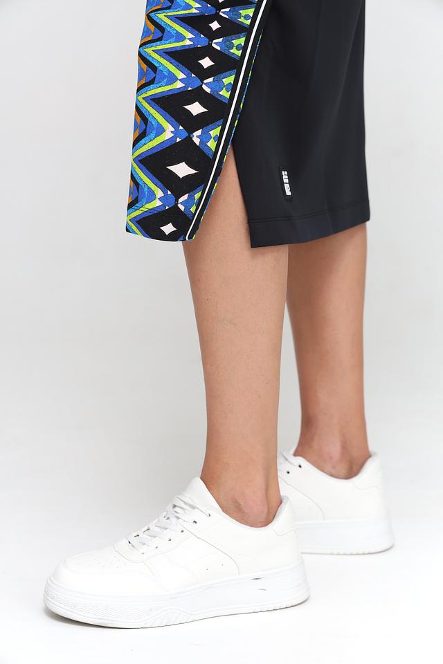 Юбка Marc Cain Sports черного цвета с ярким геометрическим принтом – стильное и удобное решение для активного образа жизни. Модель выполнена из эластичного материала, обеспечивающего комфорт при движении. Состав: полиамид 86%, эластан 14%