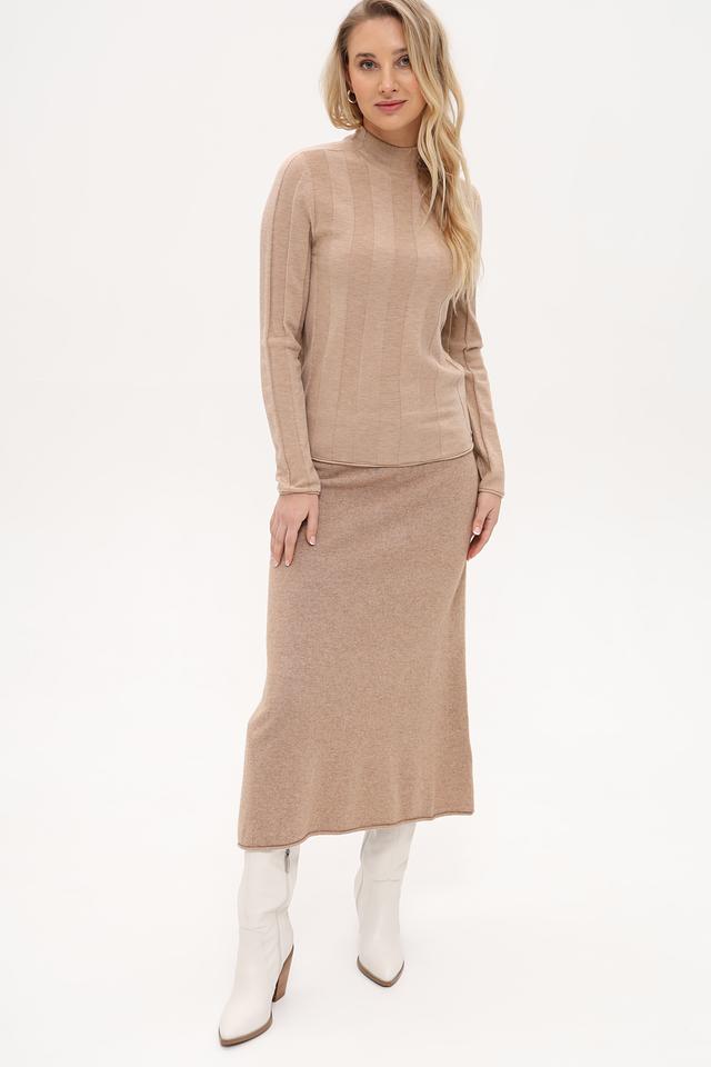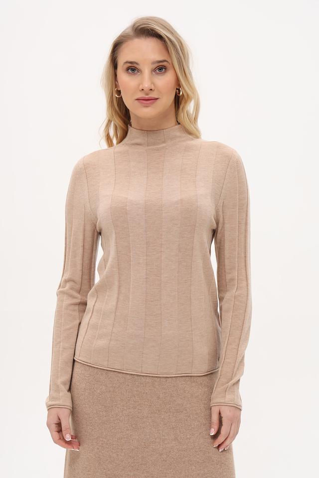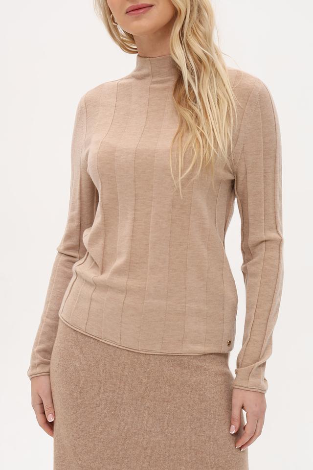 Бежевый пуловер Marc Cain из мягкой пряжи с воротником-стойкой и вертикальной текстурой. Идеально сочетается с юбкой в тон, создавая элегантный и стильный образ. Пуловер выполнен из высококачественной шерсти, полиэстера и кашемира. Состав: шерсть 75%, полиэстер 20%, кашемир 5%
